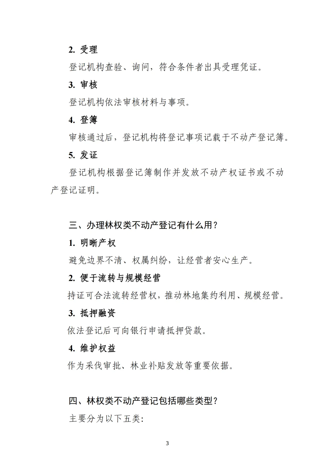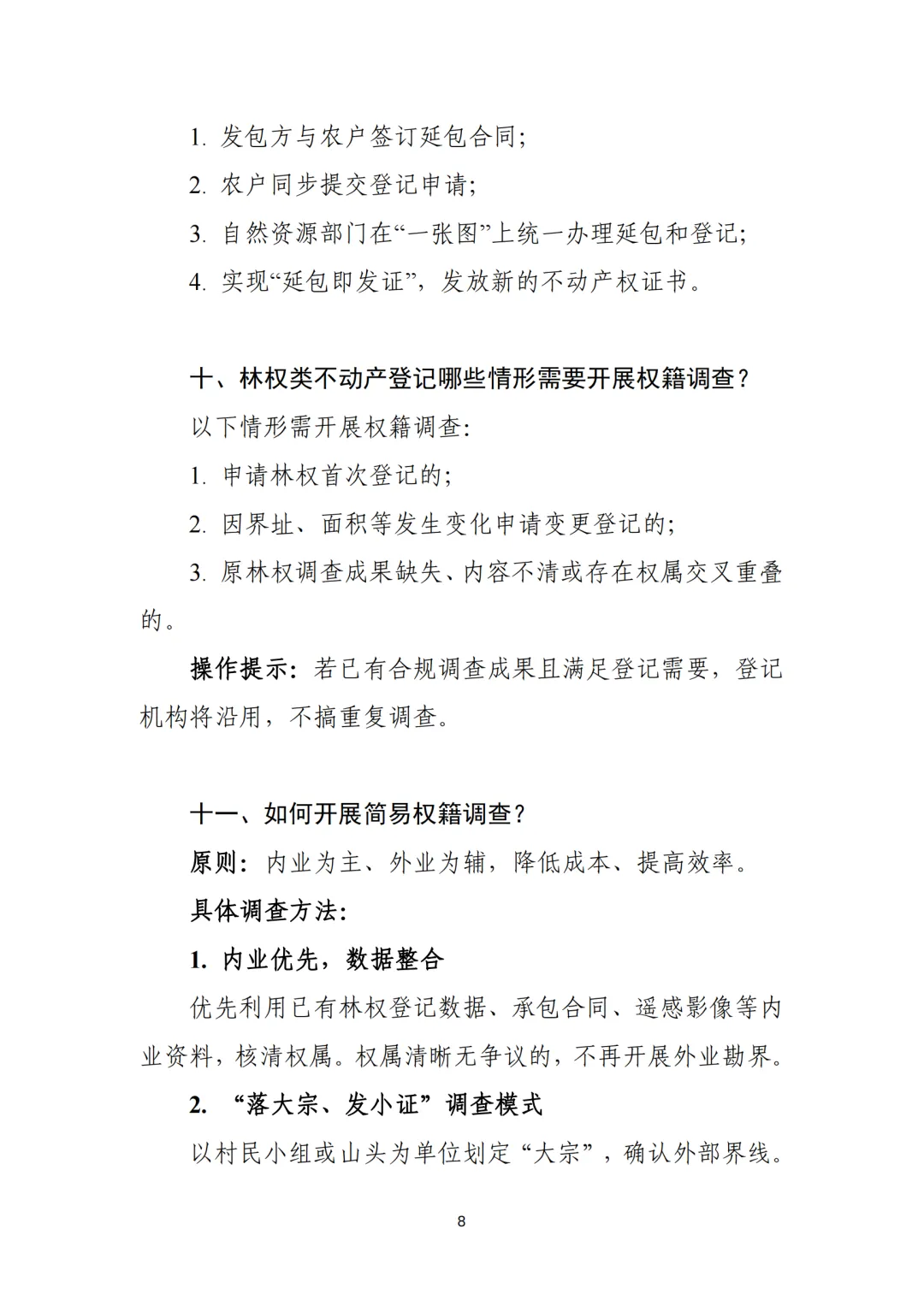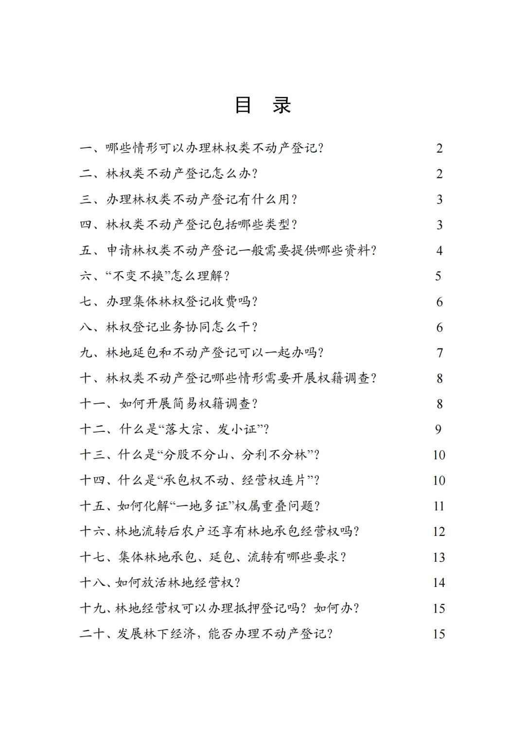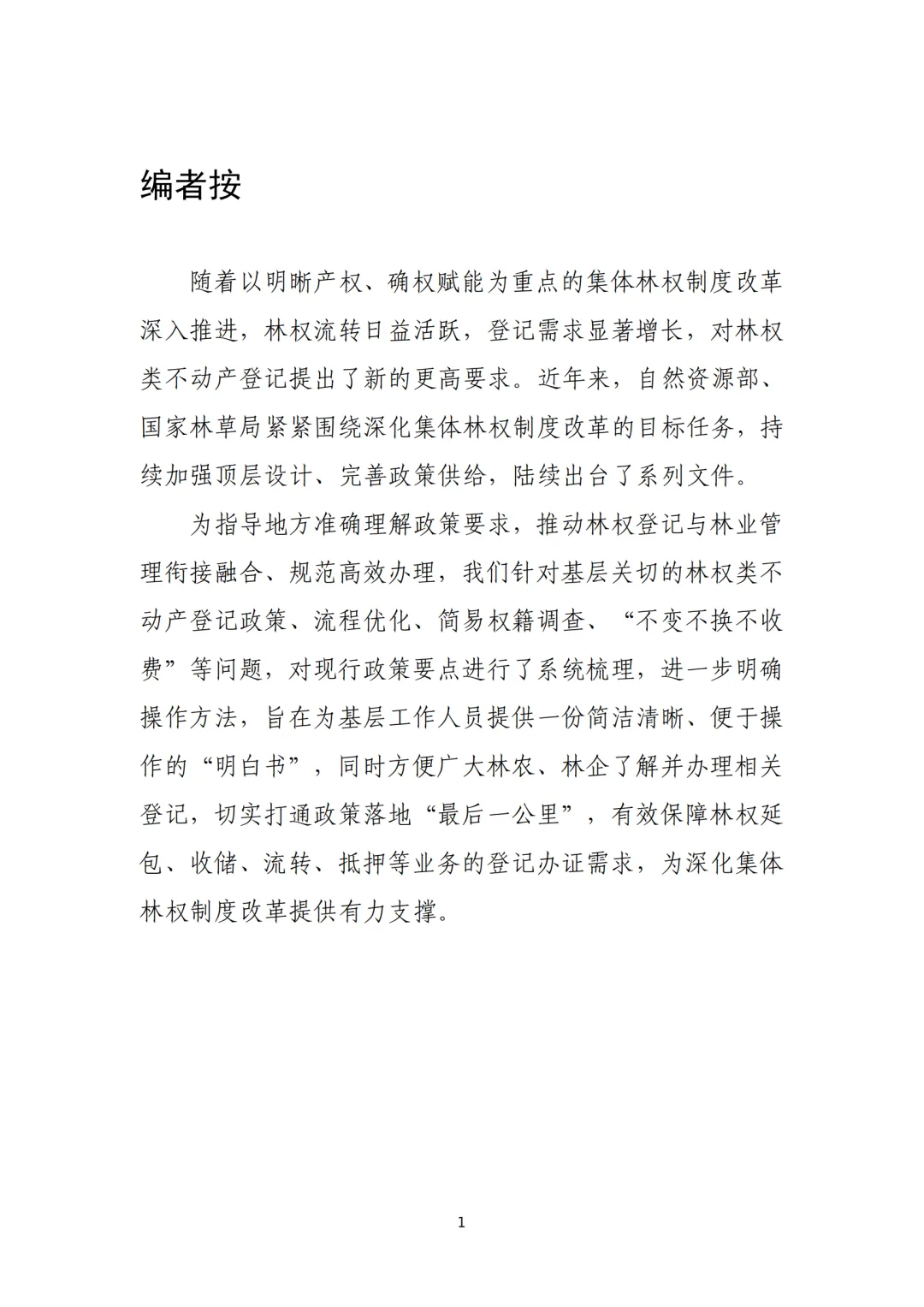 为指导地方准确理解政策要求,推动林权登记与林业管理衔接融合、规范高效办理,我们针对基层关切的林权类不动产登记政策、流程优化、简易权籍调查、“不变不换不收费”等问题,对现行政策要点进行了系统梳理,进一步明确操作方法,旨在为基层工作人员提供一份简洁清晰、便于操作的“明白书”,同时方便广大林农、林企了解并办理相关登记,切实打通政策落地“最后一公里”,有效保障林权延包、收储、流转、抵押等业务的登记办证需求,为深化集体林权制度改革提供有力支撑。